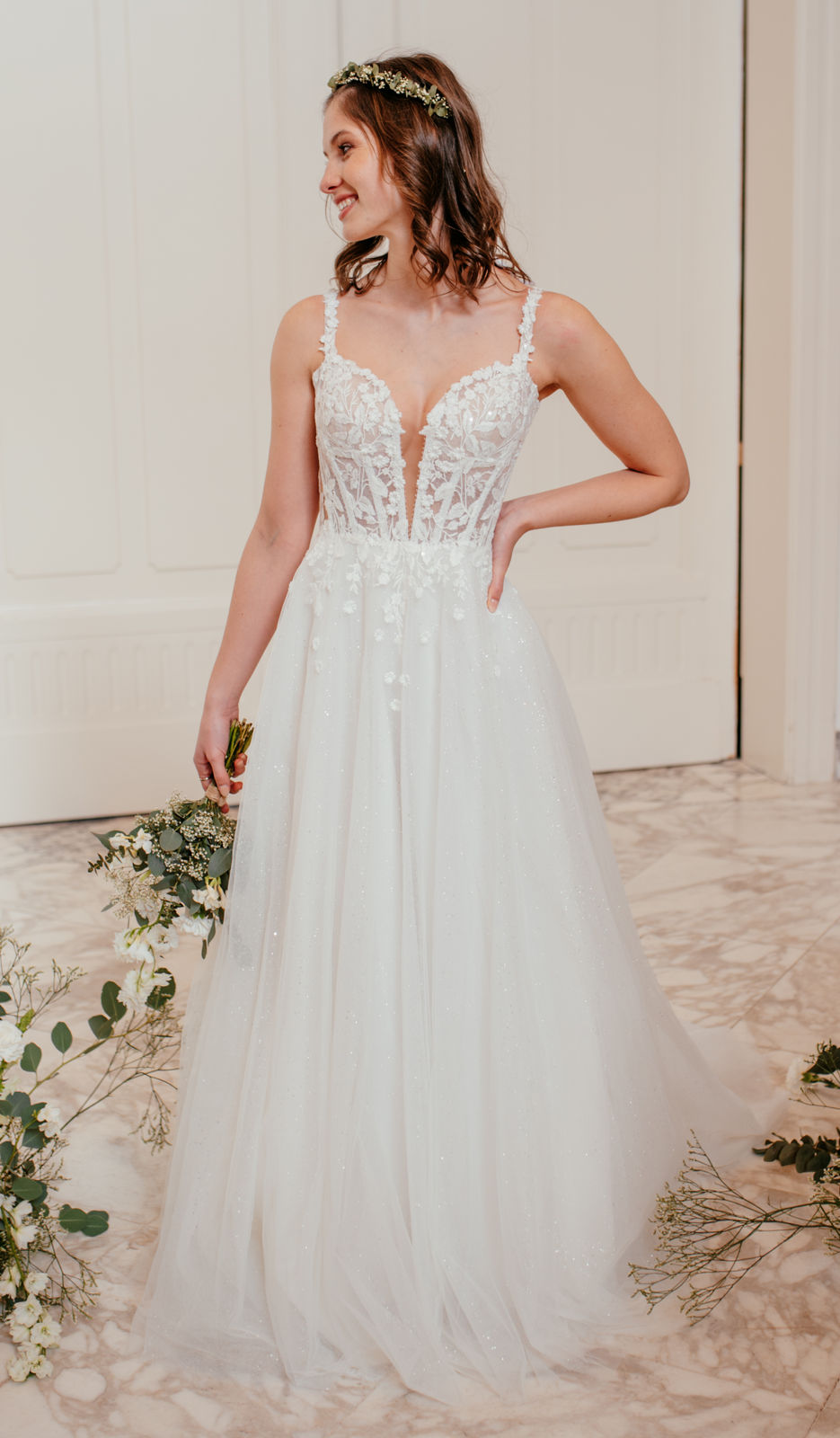 Ich führe neue Brautkleider und Secondhand Kleider, die in hochwertigem Zustand und nur ein einziges Mal getragen wurden. Im Sinne von Nachhaltigkeit führe ich nur Kleider, die in Europa produziert werden und du kannst dein Brautkleid mieten oder kaufen.